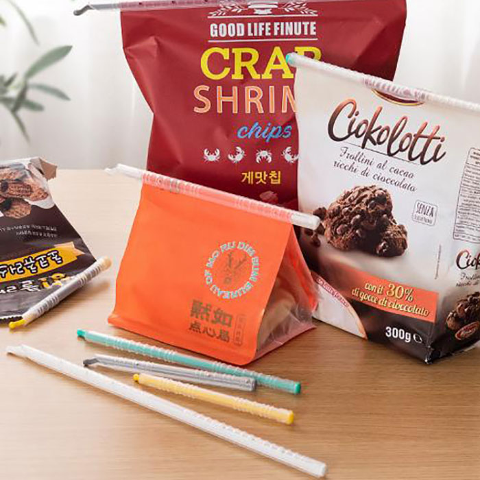PP-afdichtingsclips voor voedsel- en snackzakken Geschikt voor de meeste niet-verzegelde zakken Het bestaat uit interne en externe plastic staven Als de inhoud van de zak niet in één keer kan worden gebruikt nadat de originele verpakking is geopend, kan deze worden verzegeld en bevochtigd -proof door gebruik van afdichtstrips.